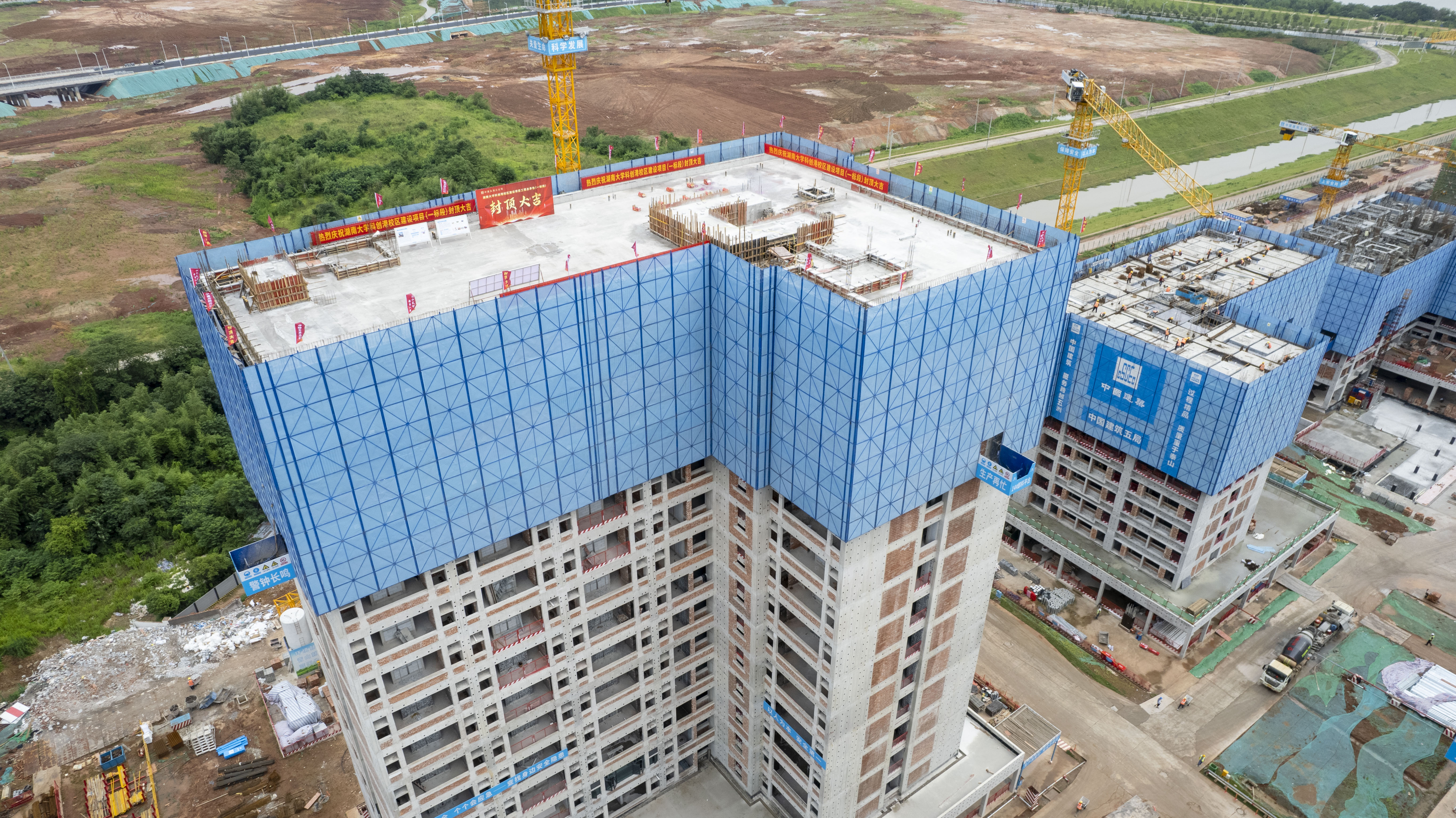 首批封顶的楼栋分别是3#、5#、9#、14#、19#栋,主要为教育科研用房和学生宿舍。