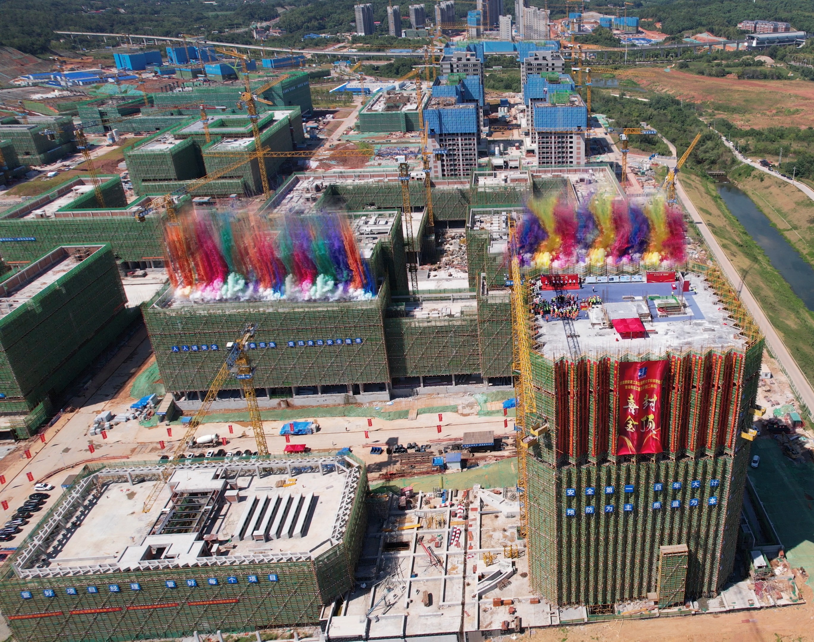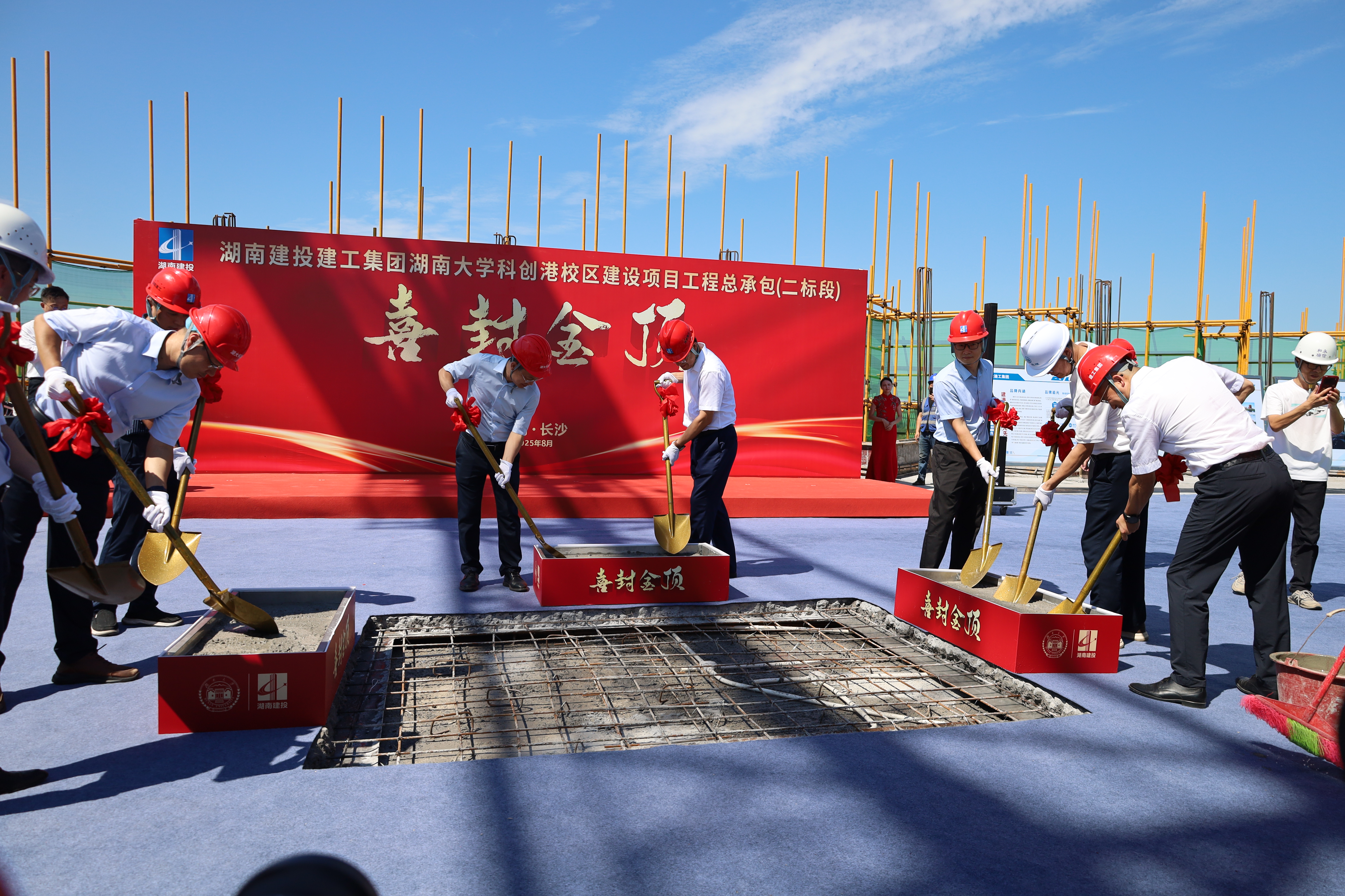 8月24日,湖南大学科创港校区建设项目工程总承包(二标段)完成主体最后一块顶板混凝土浇筑,标志着该标段项目主体结构已全面封顶。湖南大学副校长、科创港校区建设指挥部指挥长汪卫斌,湖南建工集团党委副书记、副董事长、总经理吴凯明参加封顶仪式。