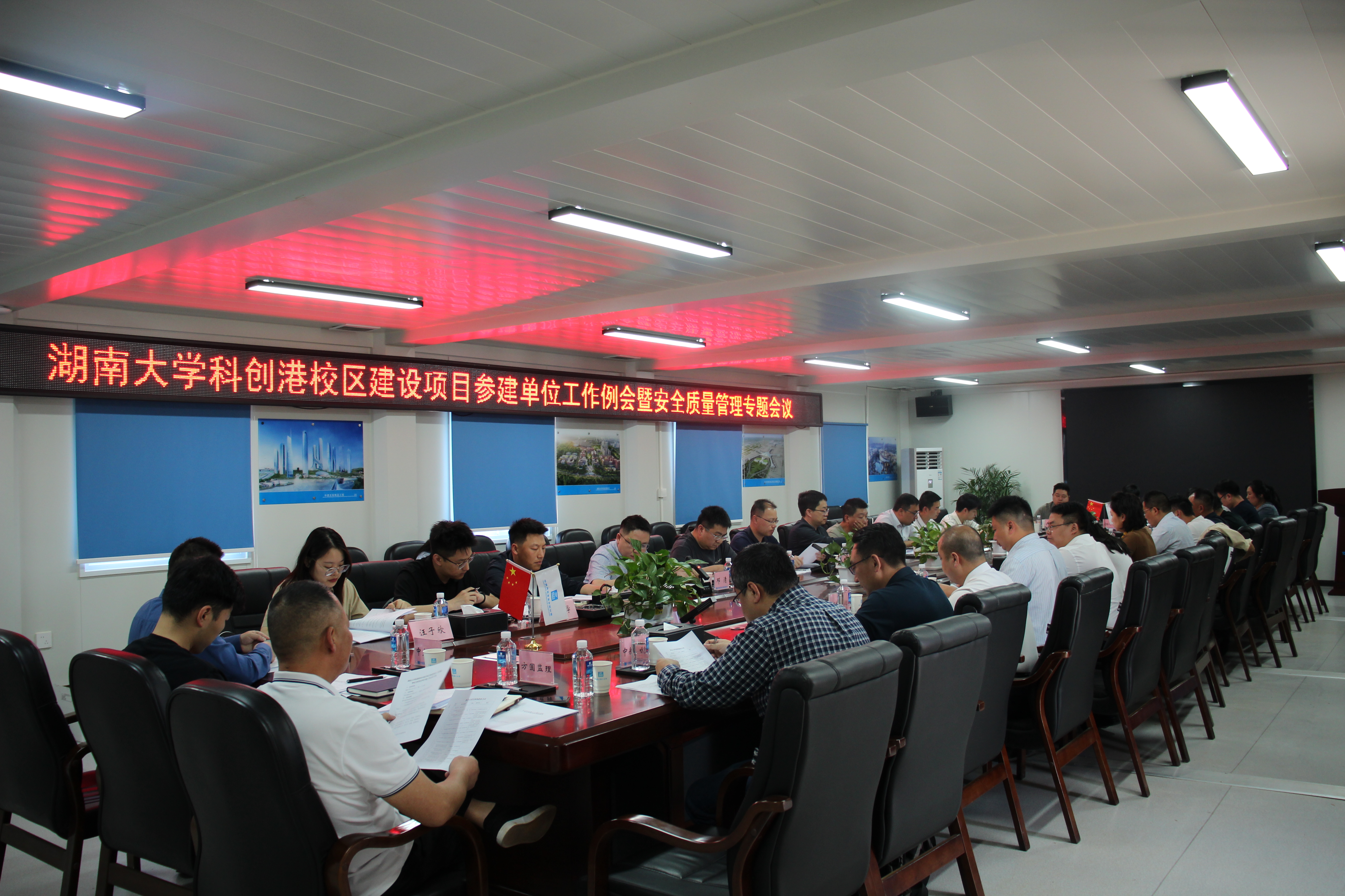 2025年4月15日,湖南大学科创港校区建设项目参建单位工作例会暨安全质量管理专题会议在科创港校区一标段项目部会议室召开。科创港校区建设办公室全体人员及各标段总承包单位施工方、设计方、项目管理、监理、检测、检测、地勘等14个参建单位主要负责人参加会议。